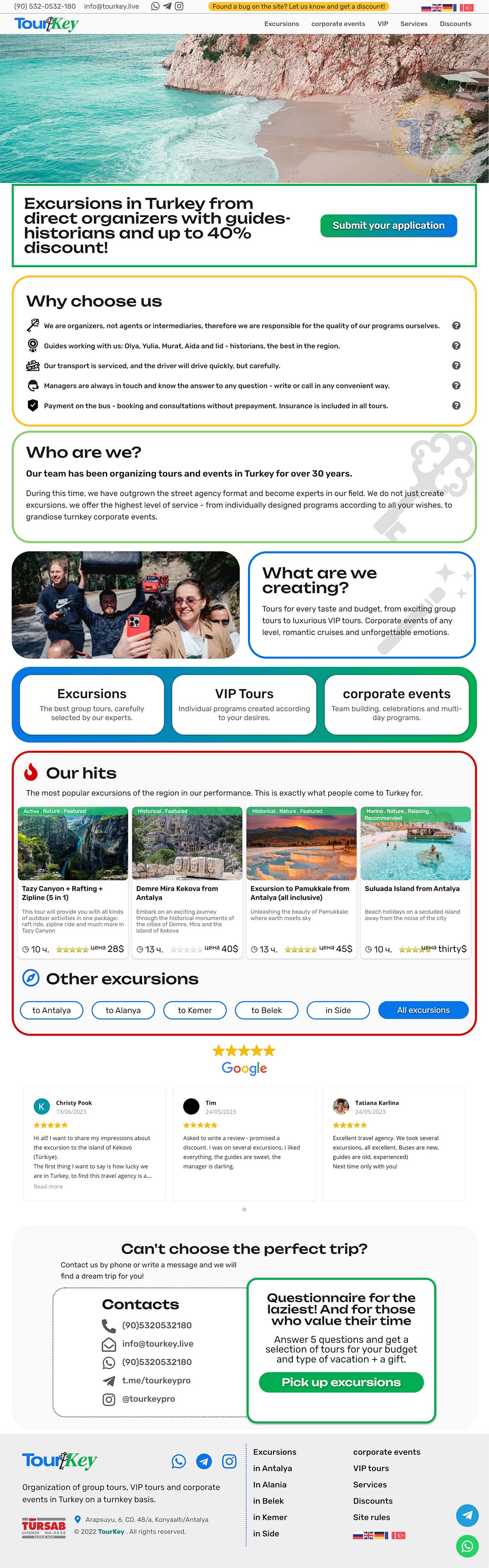 03/2023-05/2023 Otto Turizm Complete redesign of the old website - design and branding (web and socials), contentmaking and site filling - Building business logic, optimizing site speed - setting up analytics, SEO and contextual advertising, marketing strategy creation
